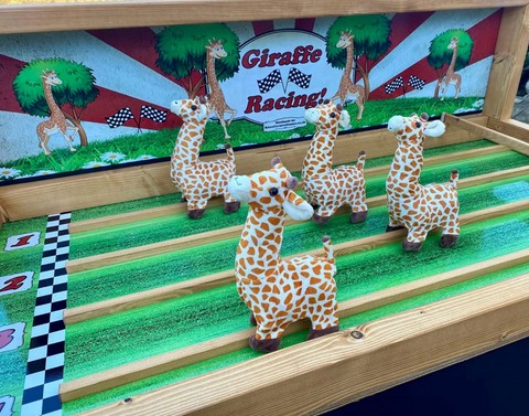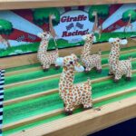 ist ein aufregendes, handgefertigtes Tischspiel aus Holz mit vier Renngiraffen – sofort spielbereit und ein Riesenspass für jede Veranstaltung! Das Spiel ist ca. 120 cm lang und 60 cm breit und steht sicher auf fast jedem Tisch. Alle Zubehörteile sind im Lieferumfang enthalten. Die Spieler wählen eine Giraffe für die Bahn 1, 2, 3 oder 4. Wer tippt auf den schnellsten Giraffen? Hier ist ein Video davon: https://www.gumpiburg.ch/wp-content/uploads/Giraffen-Rennen-Video.mp4