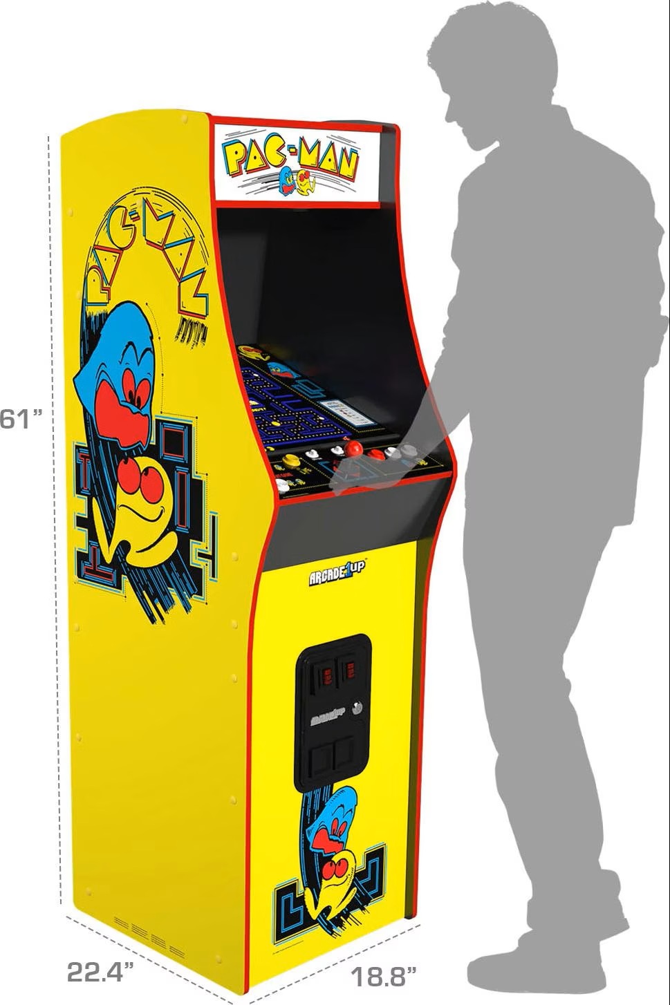 Grösse 50 x 57 x 155cm (LxBxH). Der Pac-Man-Automat bietet echtes Retro-Feeling und katapultiert Dich zurück in die 80er/90er-Jahre! Ideal für Firmen-Events, Vereinsfeste, private Feiern oder jede Veranstaltung, die noch ein besonderes Extra braucht.| Mietpreis: | Fr. 200.00 |