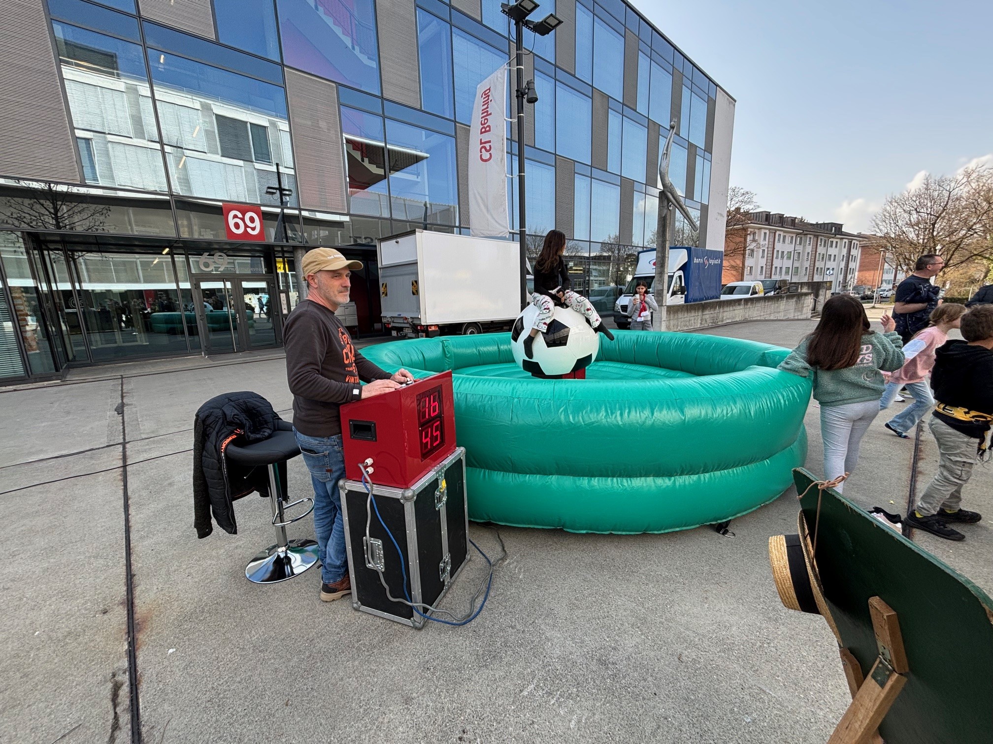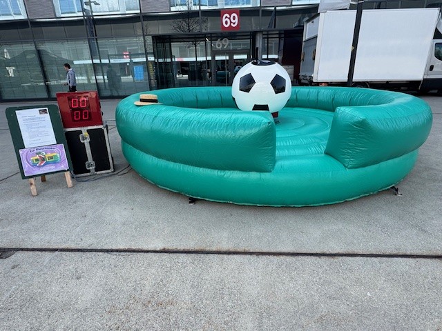 Platzbedarf ca. 6 x 6m. Bei Bedarf ist das Fussball-Bullriding mit