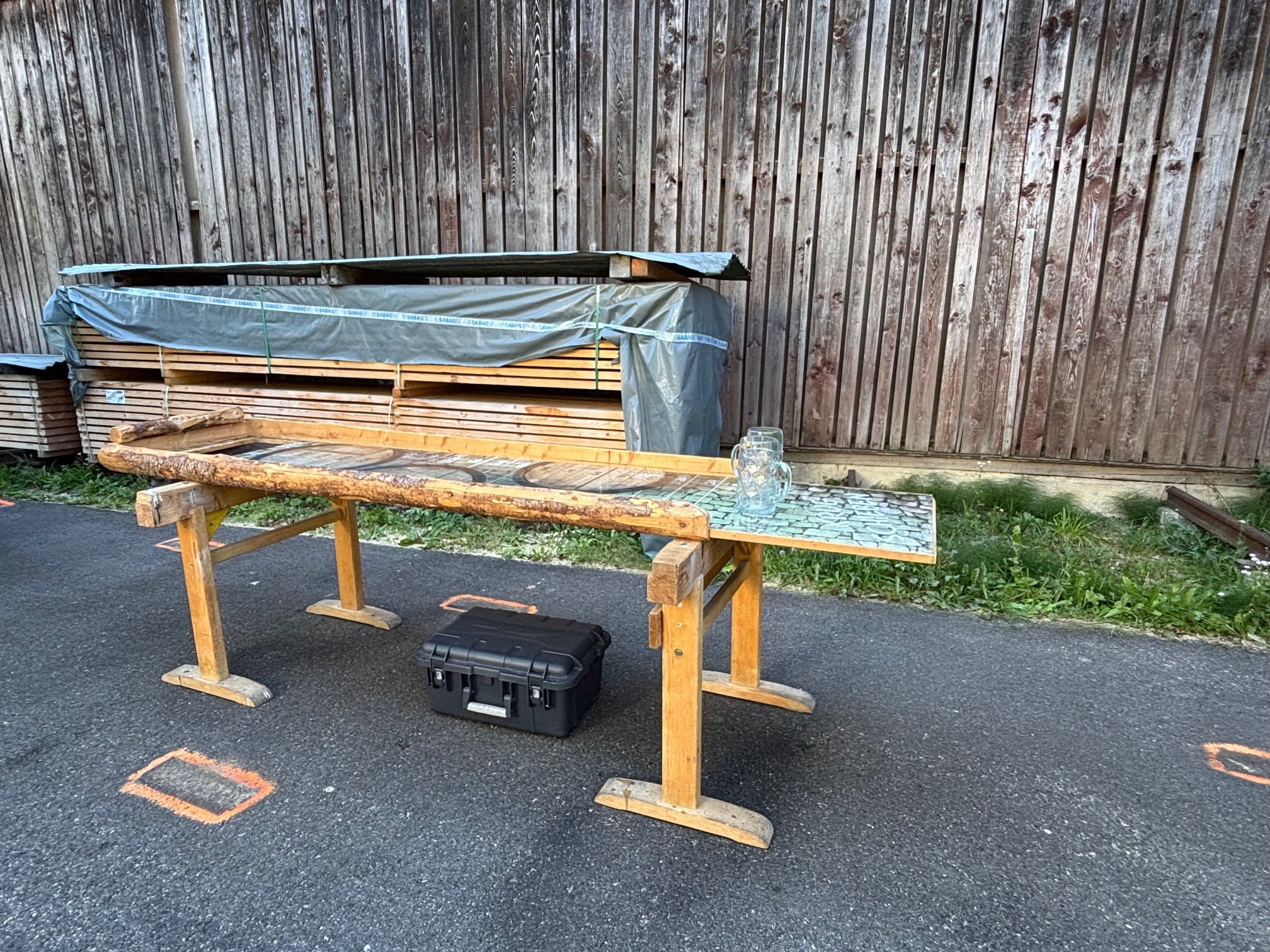 Grösse: 250 x 60 cm (Länge x Breite) auf Unterstellblöcken.